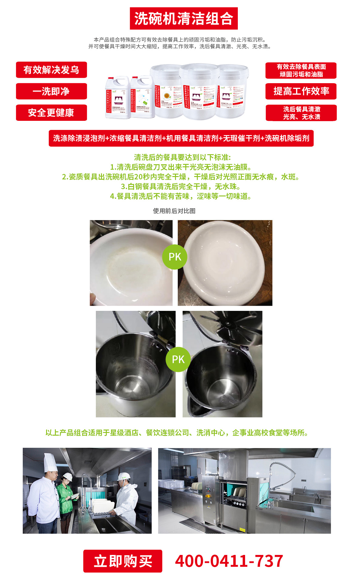 此產(chǎn)品組合適用于星級酒店、餐飲連鎖公司、洗消中心,企事業(yè)高校食堂等場所。